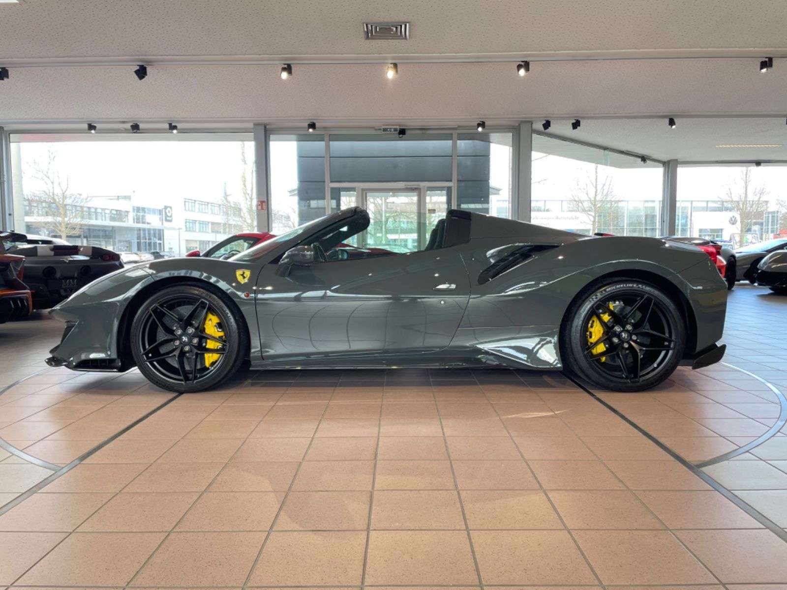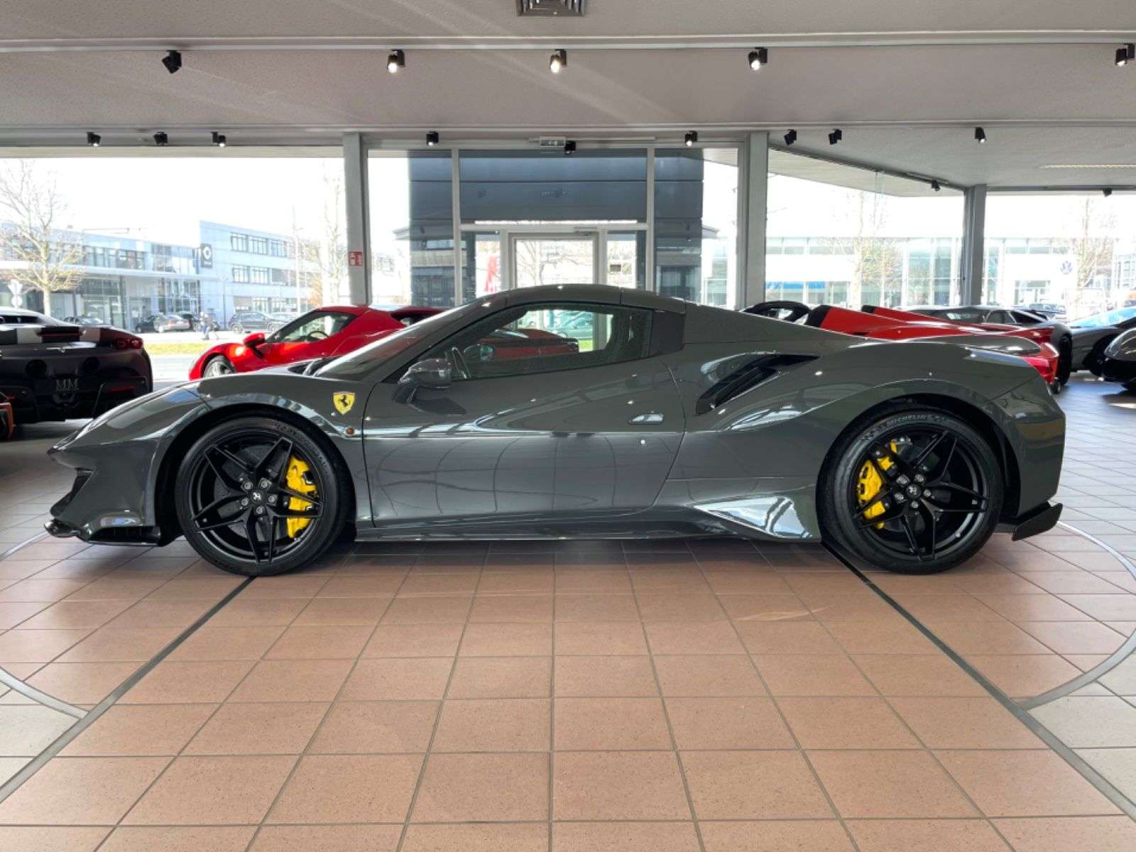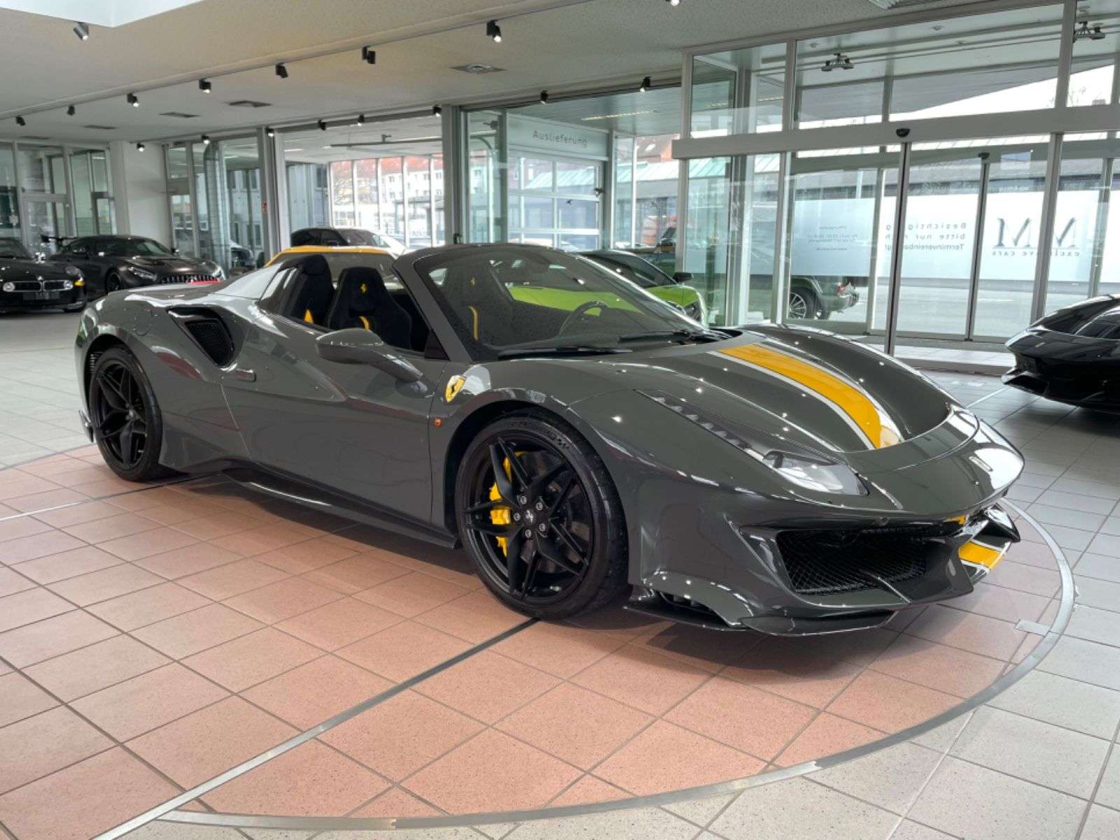 ckierung: Historische Farbe - Grigio ScuroRacing Streifen in Giallo Modena und Bianco AvusErweiterter Racing Streifen Innenausstattung:Alcantara schwarz ALCSLeder Akzente/Stripe in Giallo CLDTButtons Mittelkonsole in Giallo F1PTLenkrad und F1 Paddles mit Akzent in GialloCavalino gestickt in Kopfstützen in Giallo EMPHNähte in Giallo STC2Nähte gestickt am Lenkrad in GialloEinstiegsschienen in Carbon Matt CISCCarbon Türseitentafeln CEXSCarbon obere Mittelkonsole CITZCarbon Racing Sitze in Large RSCHFahrersitz mit Lifter RSESDrezahlmesser in Giallo RPMWSicherheitsgurte in Giallo CSB1nderausstattung:Carbon Fiber Front Flaps CEFSCarbon Fiber Side Air Splitter CEISMotorraum Carbon CEL2Heck-Diffusor Carbon Fiber CEXDFront Lufteinlässe in Carbon Fiber CEXGCarbon Fiber Einsätze zwischen den Rückleuchten GRDCLifting System ELEVFront and rear Parking Kamera PAC3Auspuffendrohre in Titanium EXATScuderia Embleme LOGOElektrochromer Innen und Aussenspiegel MIR2Navi System mit Bluetooth NAVCHigh Emotion Low Emission HELEAdaptives Scheinwerfersystem AFS1Audio System SND2Lithium Ionen Batterie LITBRadnabenkappe Carbon CUPCBremsättel in Giallo CALYApple Carplay ACPLnstiges:2.HandUnfallfreiScheckheft gepflegt7 Jahre Maintenance WartungsprogrammFahrzeug komplett mit SteinschlagschutzfolieWie leicht fällt es dir, diese Seite zu nutzen?
